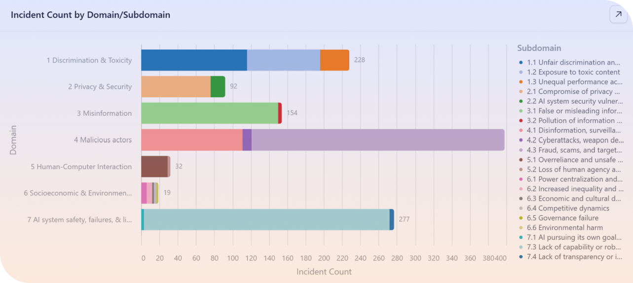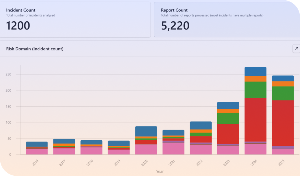 The MIT AI Incident Tracker is one of the best current resources for understanding real-world AI failures. It categorises incidents by harm domain and severity, tracking trends over time.