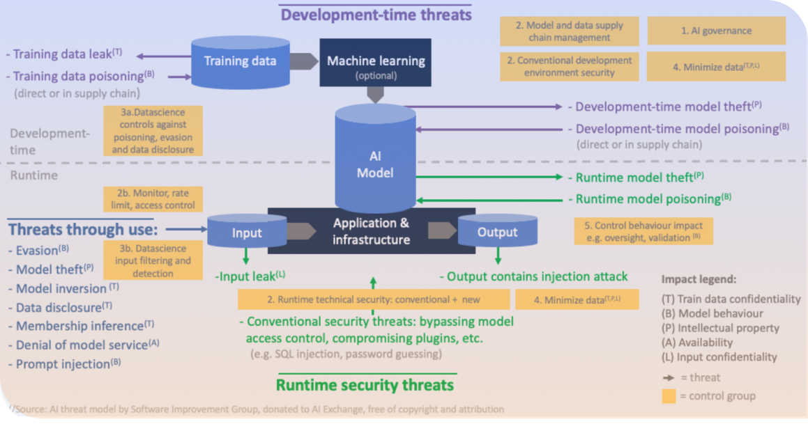 AI systems face threats during development, usage, and runtime.
